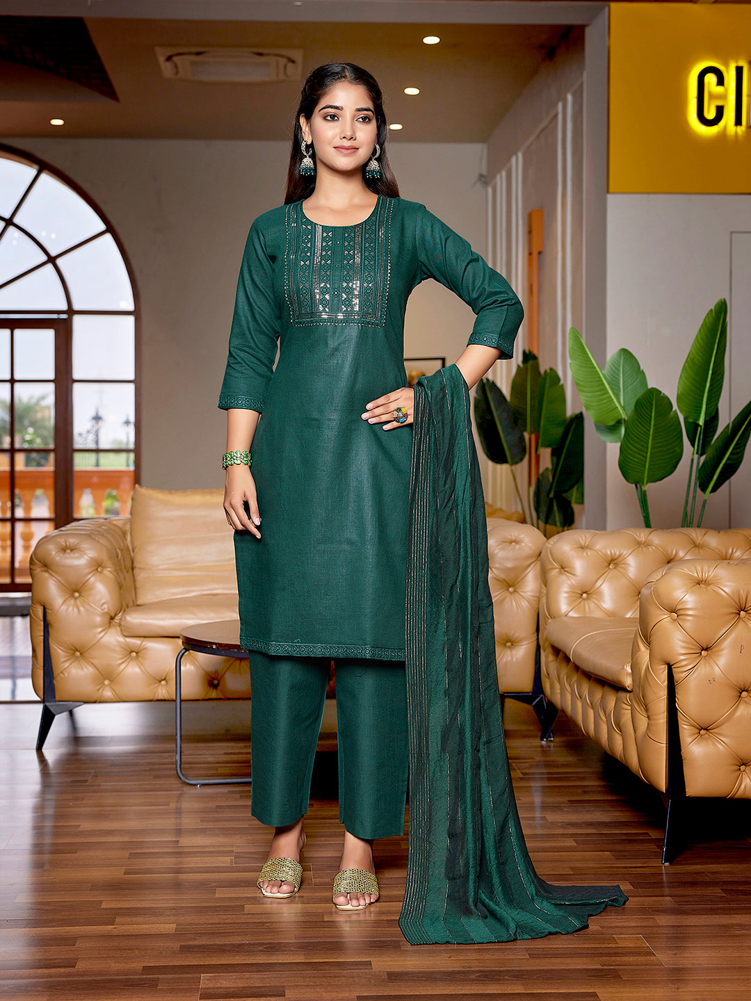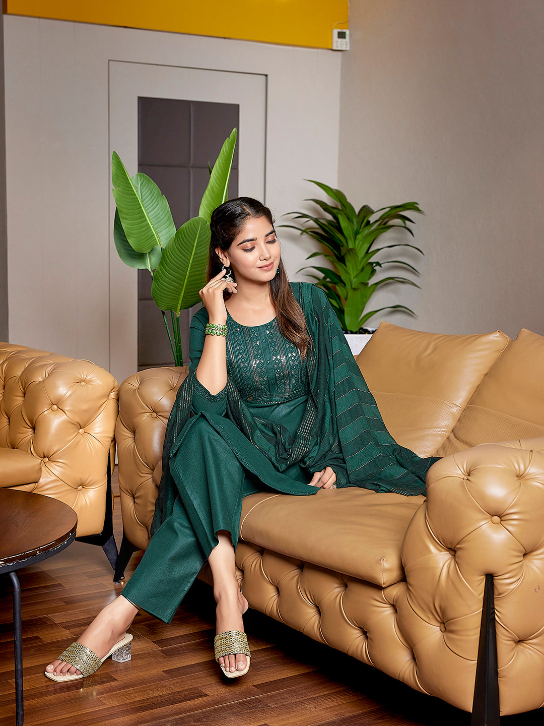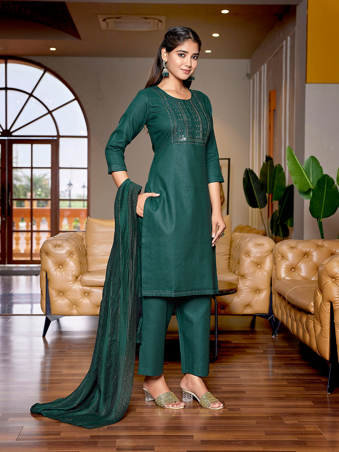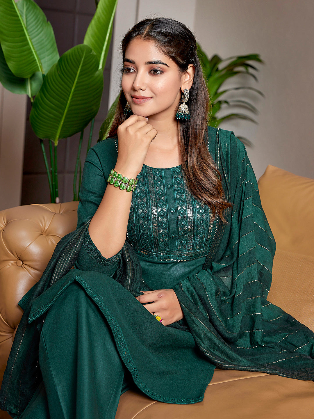 Color - Salwar - Bottle Green, Bottom - Bottle Green, Dupatta - Bottle Green