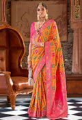 Cadmium Orange Peacock Motif Banarasi Silk Saree