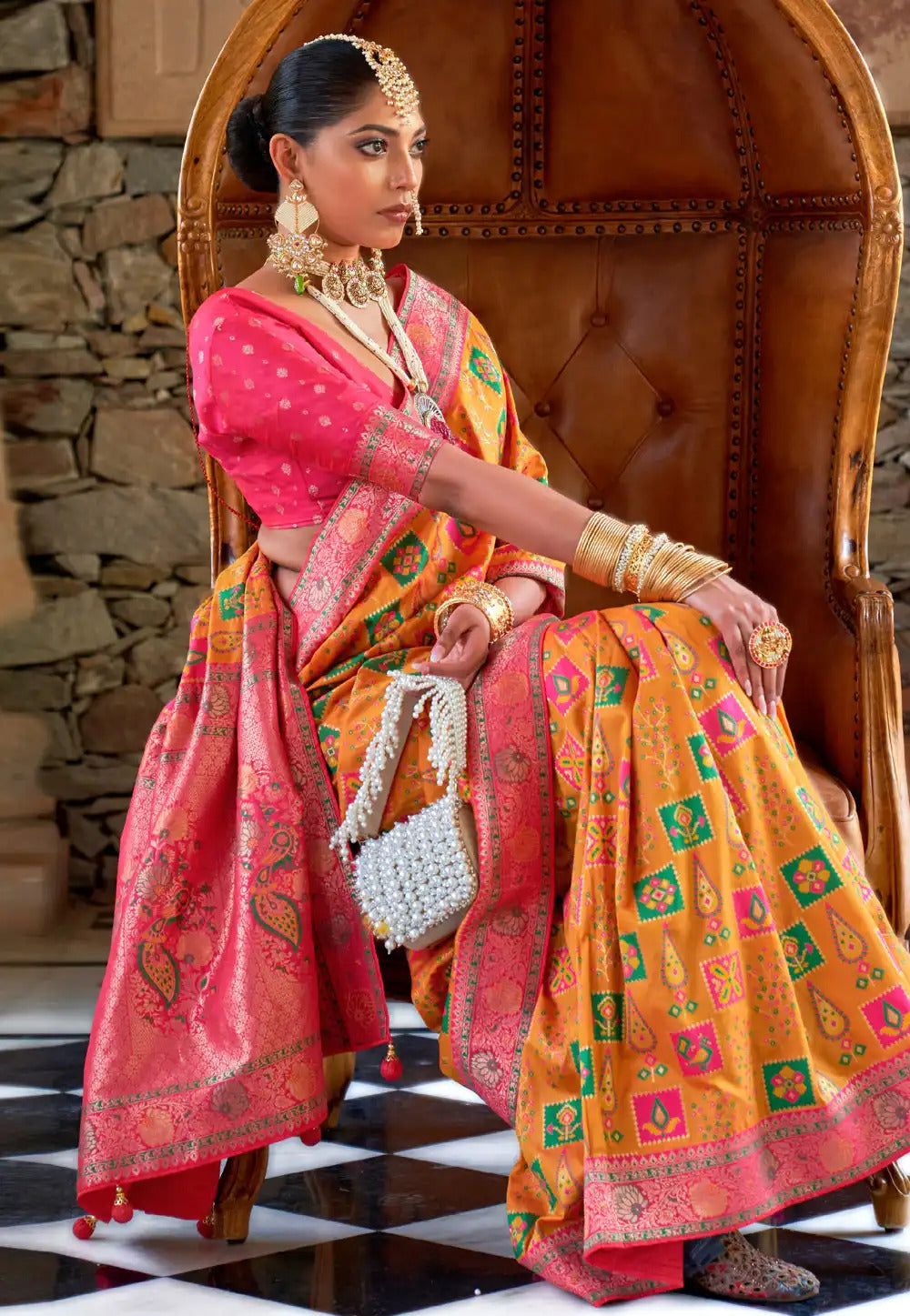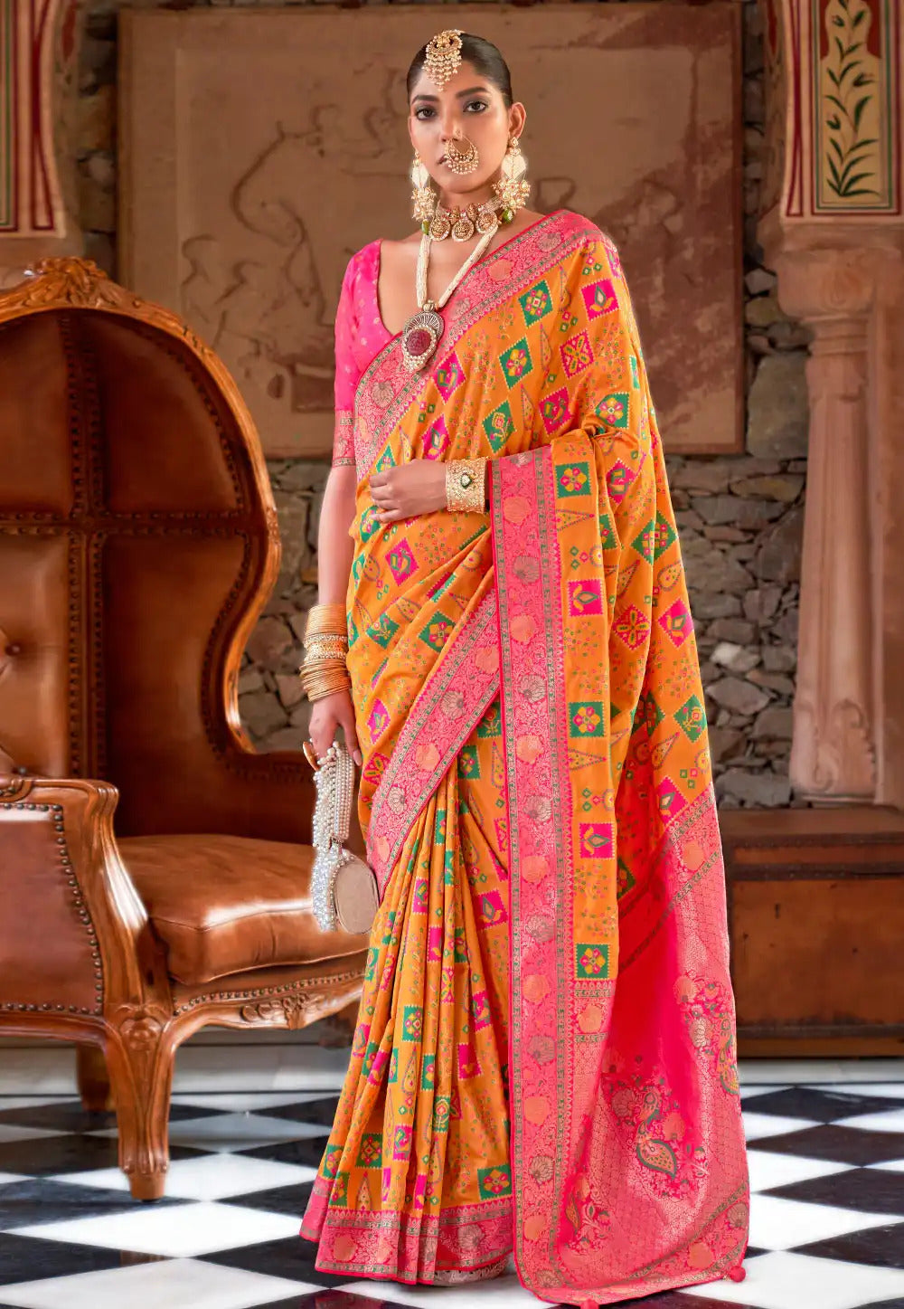 Color - Saree: Cadmium Orange, Blouse: Pink