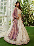 Color - Lehenga: Cream, Choli: Cream, Dupatta: Purple