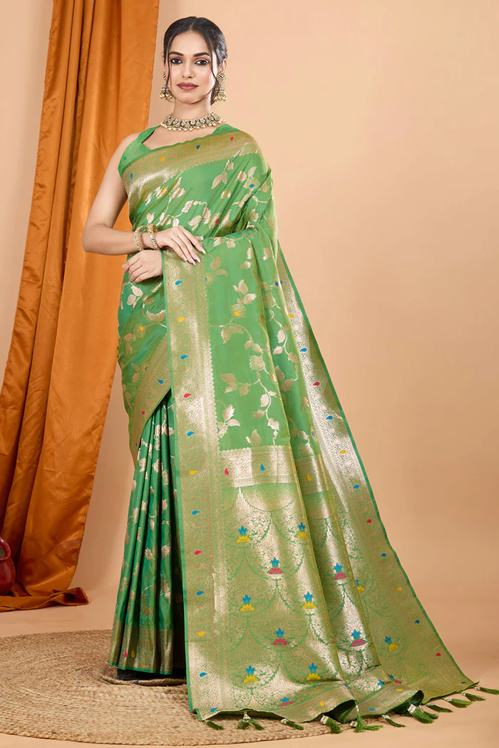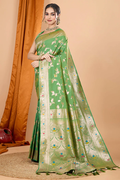 Green Banarasi Silk Traditional Saree with Zari Work