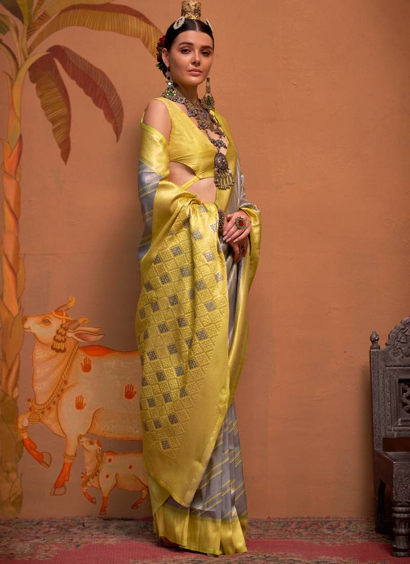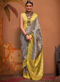 Grey and Yellow Handloom Weaving Silk Saree