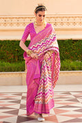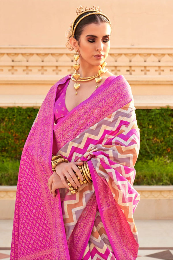 Lotus Pink Foil Print Zari Woven Silk Saree