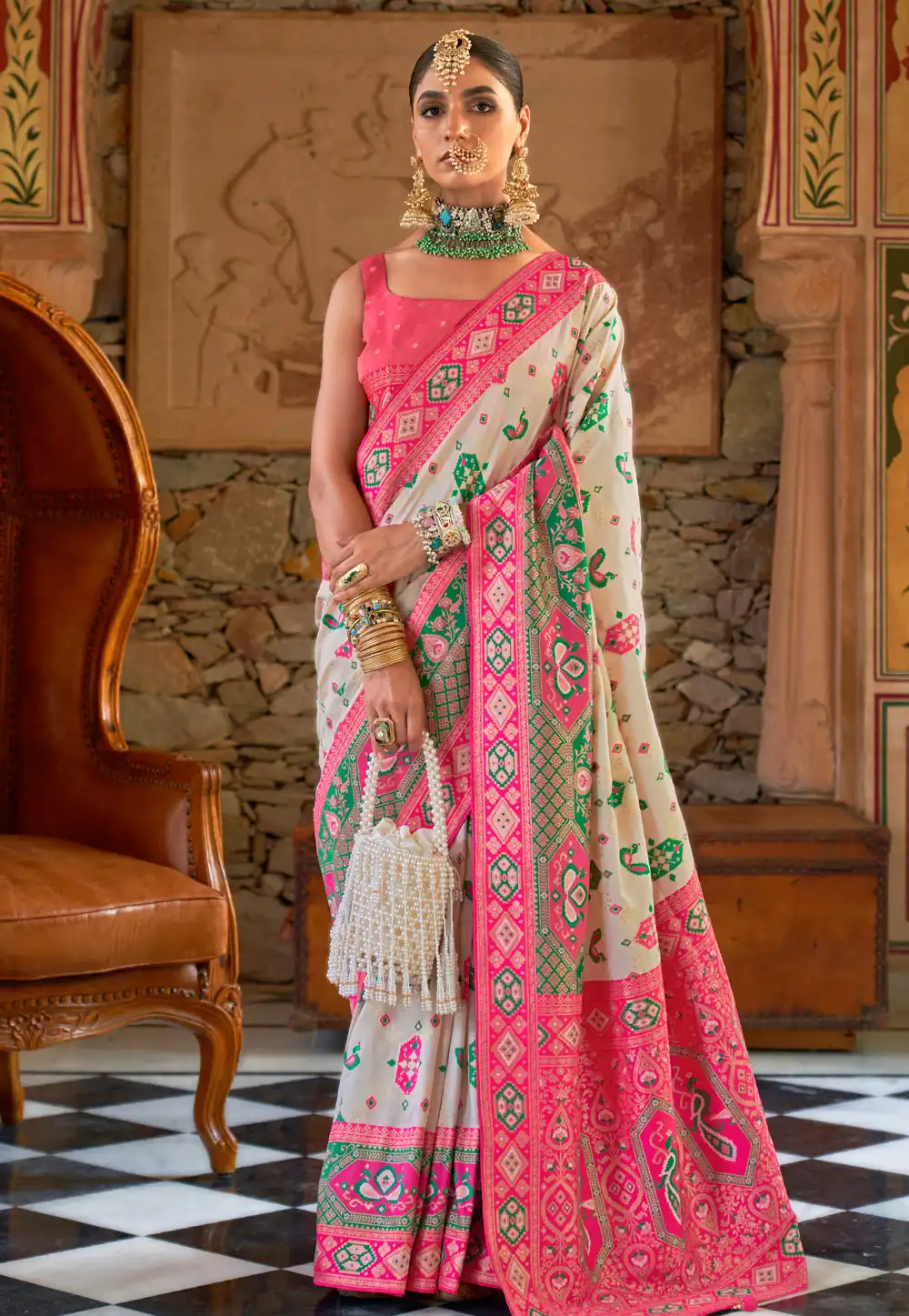 Off White Banarasi Silk Bridal Saree beautified with Zari Designer Work. This festival saree is made of J.P.W Banarasi Silk and can be worn on occasions like Engagement, Wedding, and Reception. It comes along with an un-stitched Zari weaving blouse which may be customized up to 44 inches. Note: Due to photographic reasons their might be slight color variation.