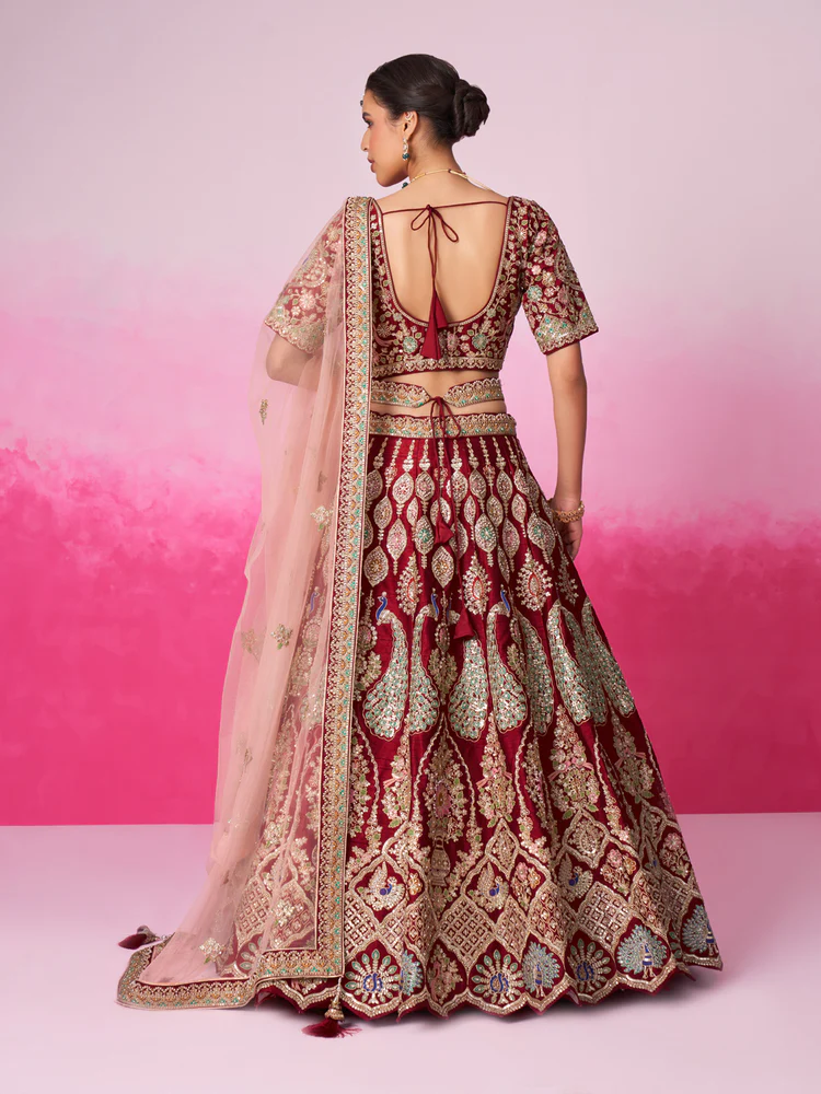 Pure Silk Embroidered Red Bridal Lehenga Choli