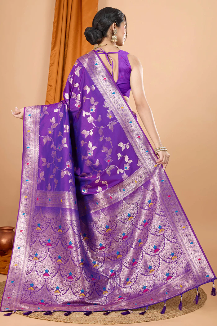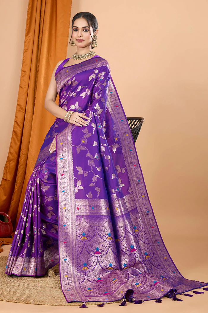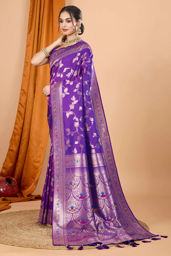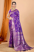 Purple Banarasi Silk Traditional Saree with Zari Work