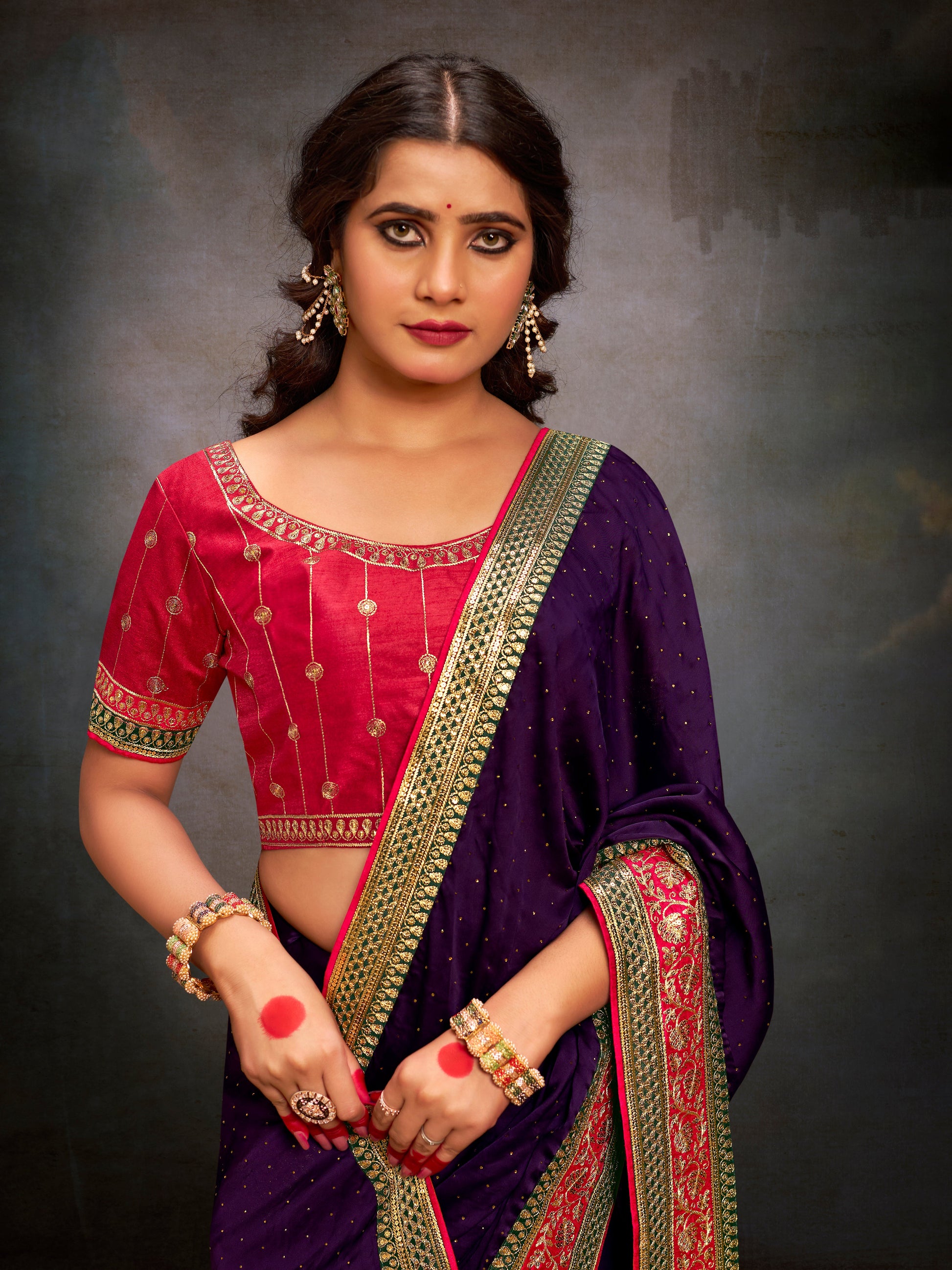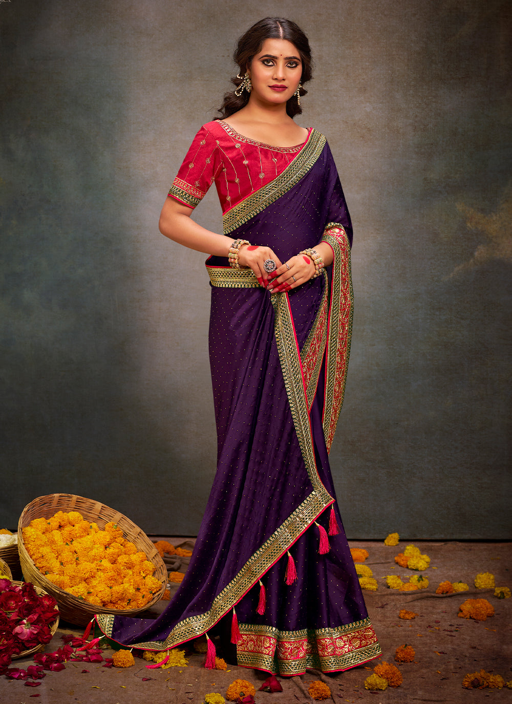 Color - Saree: Purple, Blouse: Pink