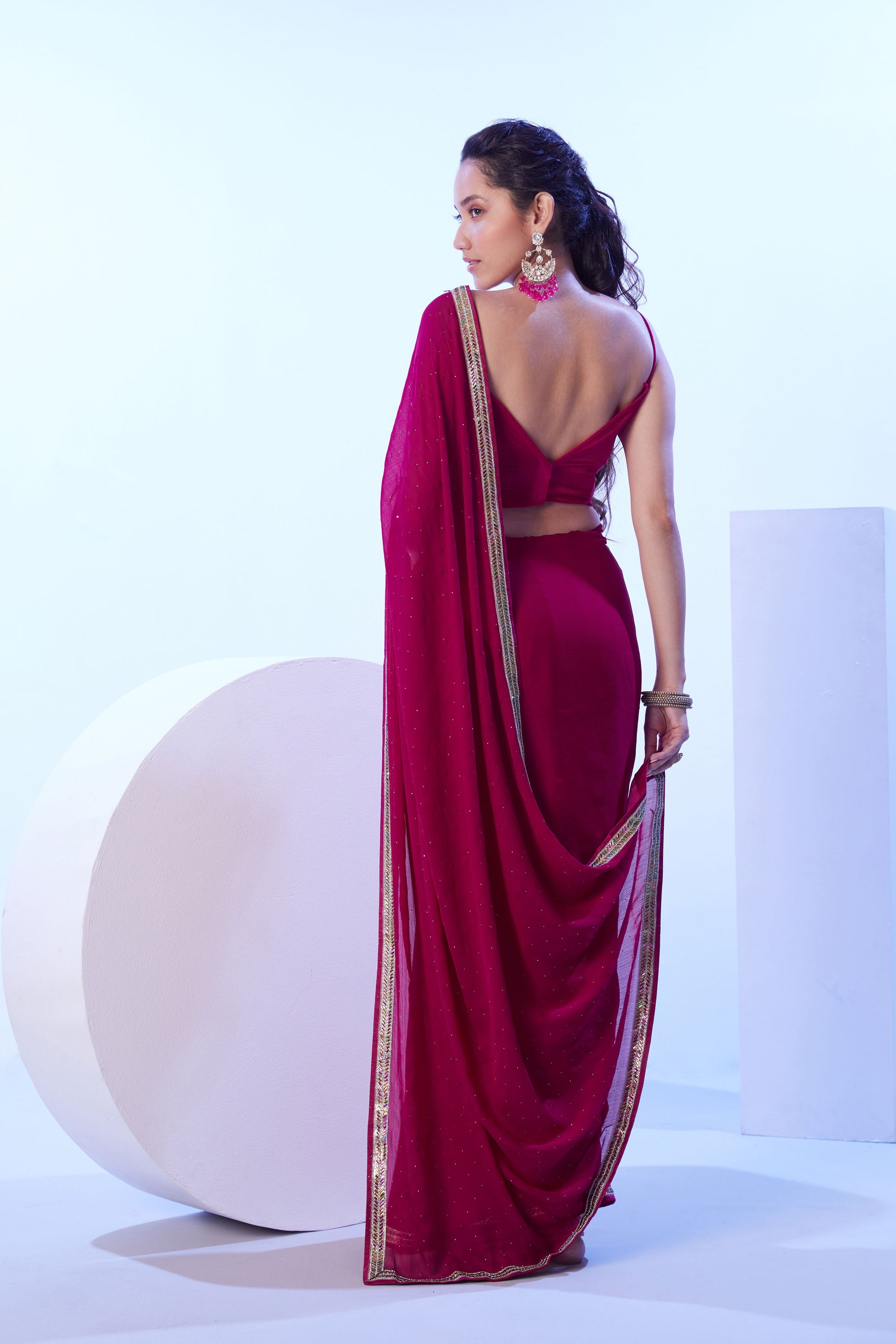 Pink Color Saree comes in satin fabric and beautified with lace designer work. This party wear saree comes along with an un-stitched same color blouse which may be customized up to 44 inches. Note: Due to photographic reasons their might be slight color variation.